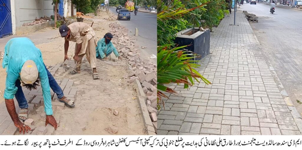 ضلع جنوبی کی ترکیہ کمپنی آئسس نے شہریوں کی سہولت کے لئے سڑکوں کے اطراف فٹ پاتھ پر تقریباً دو ہزار اسکوائرفٹ پر پیور لگا کر فٹ پاتھ کو پکا کردیا ہے،با قی اضلاع میں بھی نجی کمپنیز شہریوں کو ریلیف فراہم کرنے کے لئے اقدامات کریں۔ ایم ڈی سالڈ ویسٹ